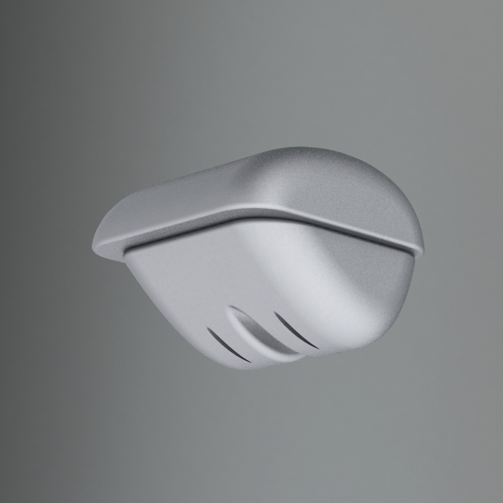 A metal pressed solid shampoo container. The name derives from the Italian word for hermit crab: the product stands at an angle and tilts back and forwards to drain the excess water, keeping the soap always dry without wasting any material. The angled base of the container is also made as to avoid the soap bar from sticking. Paguro creates a playful interaction between the users and their soap products.